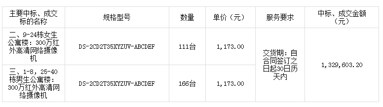 采购项目编号: GD-201606-156021-0180 采购品目:监控安保设备 中标金额: 1,329,603.20 元