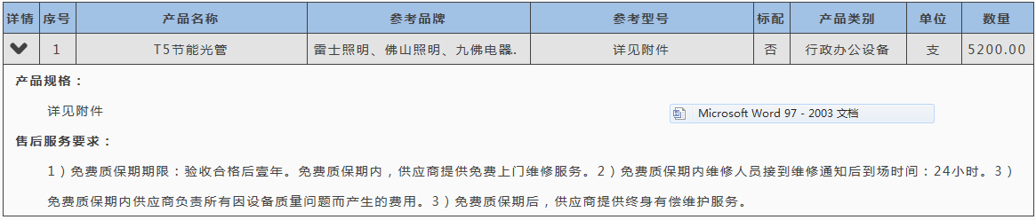 1、竞价人必须是制造商或制造商指定的代理商(经销商)或制造商指定的代理商(经销商)的授权供应商。需提供授权证明文件原件(报名截止后,由我校通知报价最低者提供此文件),无法提供的,视为无效竞价。2、货物免费送达南海校区指定地点安装。3、T5光管参考品牌:雷士照明、佛山照明、九佛电器、百分百照明。4、报价:1)按参考品牌及规格要求报价,否则视为无效报价。2)报价应包括拟提供货物和服务的运输、相关税金、安装、调试、维护等全部费用。报价不得高于预算价,高于预算价的报价无效。5、付款方式:全部货物现场安装完毕并验收合格后十天内支付合同总价的95%,剩余合同总价5%作为质保金在验收合格一年后10天内无息支付。付款时间为买方向政府采购支付部门提出支付申请的时间(不含政府财政支付部门审查的时间)。