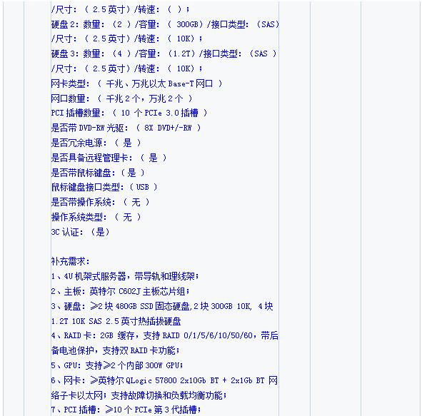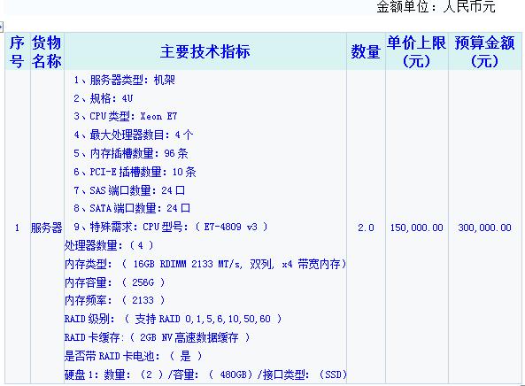 二、网上竞价采购需求一览表