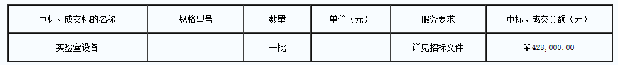 采购项目编号:201511-156021-0239采购品目:实验室设备中标金额: 428,000.00 元